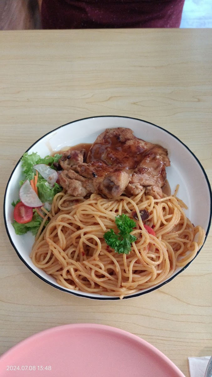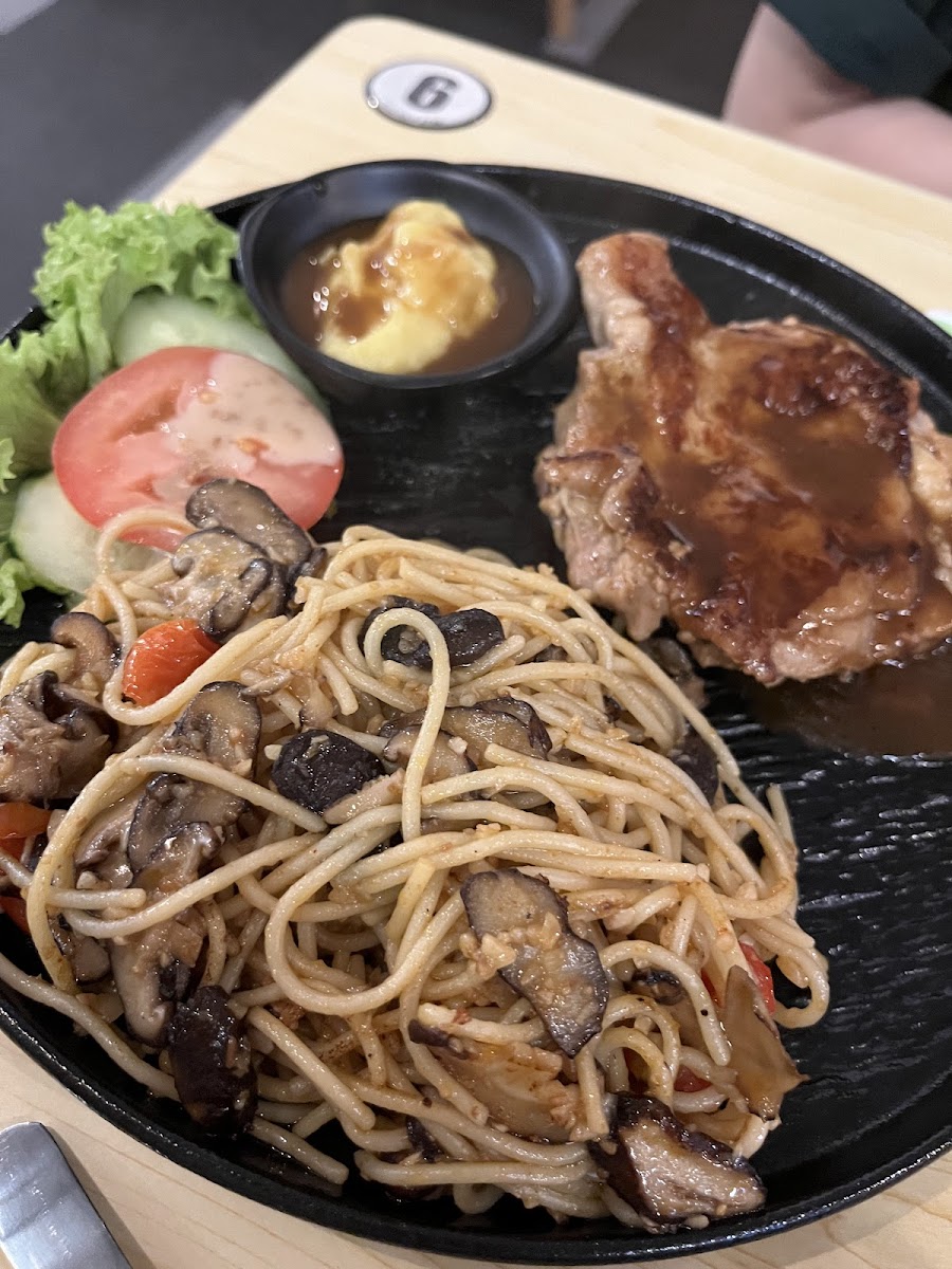 For pasta aficionados, the Aglio Olio Chicken Chop presents a deliciously grilled chicken resting atop spaghetti tossed in garlic-infused olive oil and chili flakes, delivering both flavor and comfort. Vegetarian guests will not be forgotten either, as the Aglio Olio Mushroom is equally inviting with its sautéed mushrooms embraced by a similar garlic olive oil dressing.